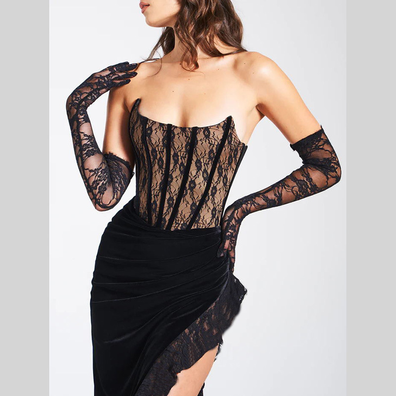 Jadore demure Sexy Lace Velvet Patchwork Dress