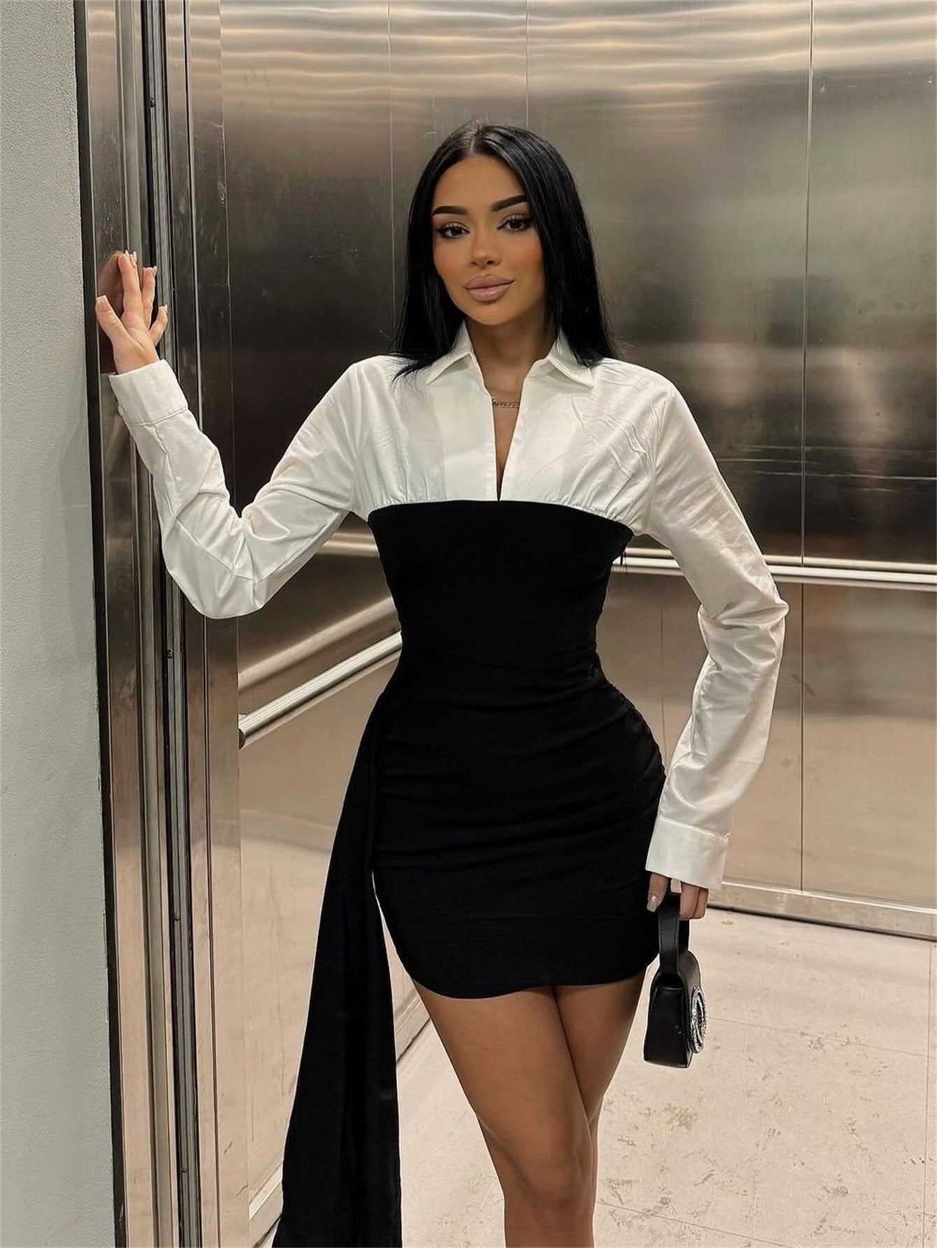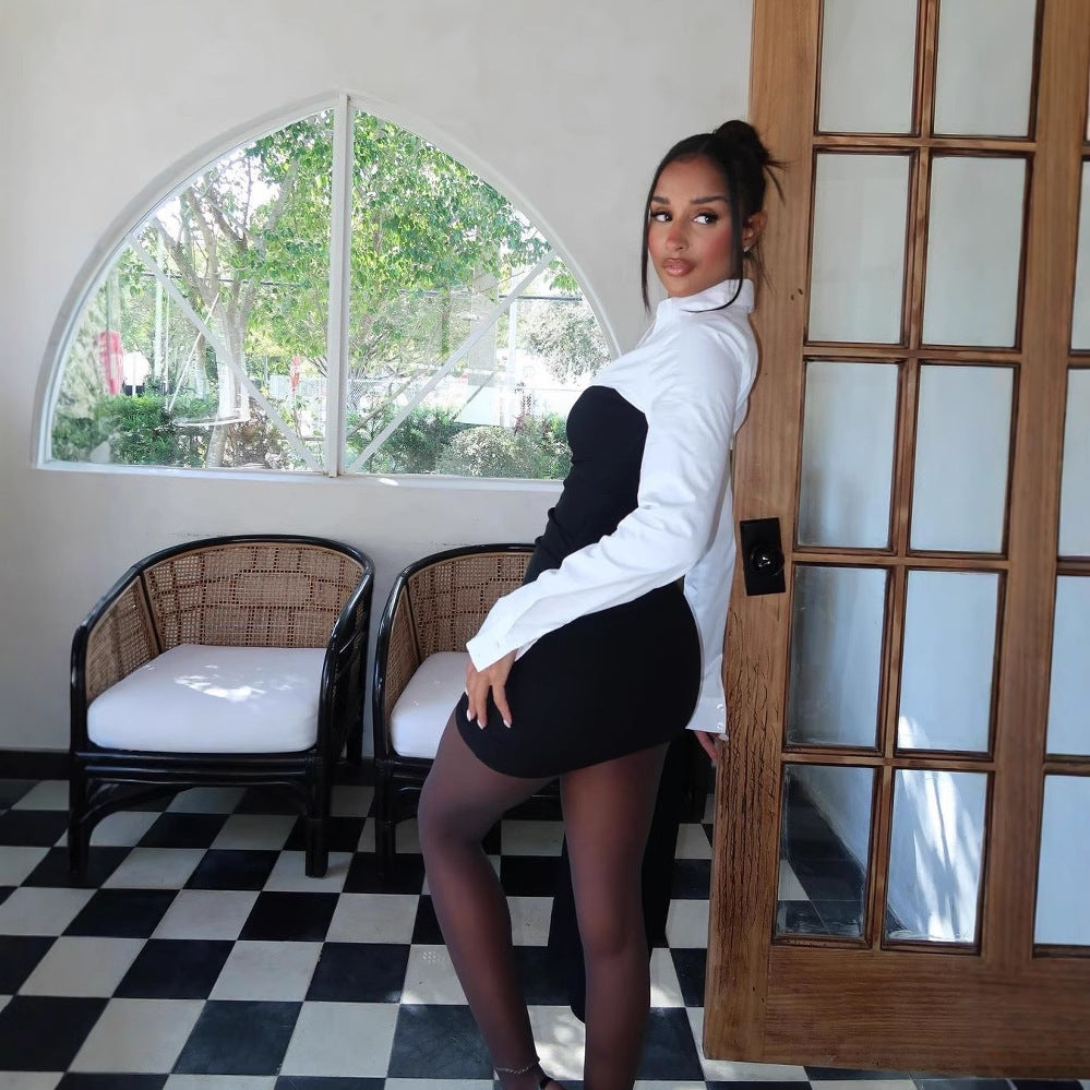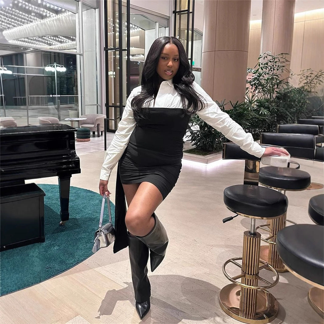 Jadore demure Women Contrast Patchwork Lapel Dress